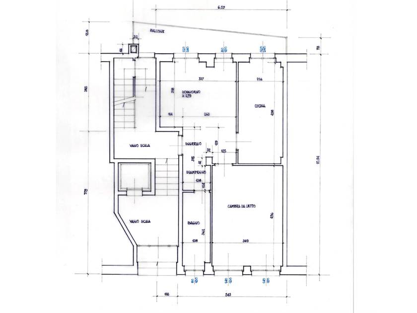 ingresso, cucina, 3 camere, due ripostigli, due bagni e balcone.