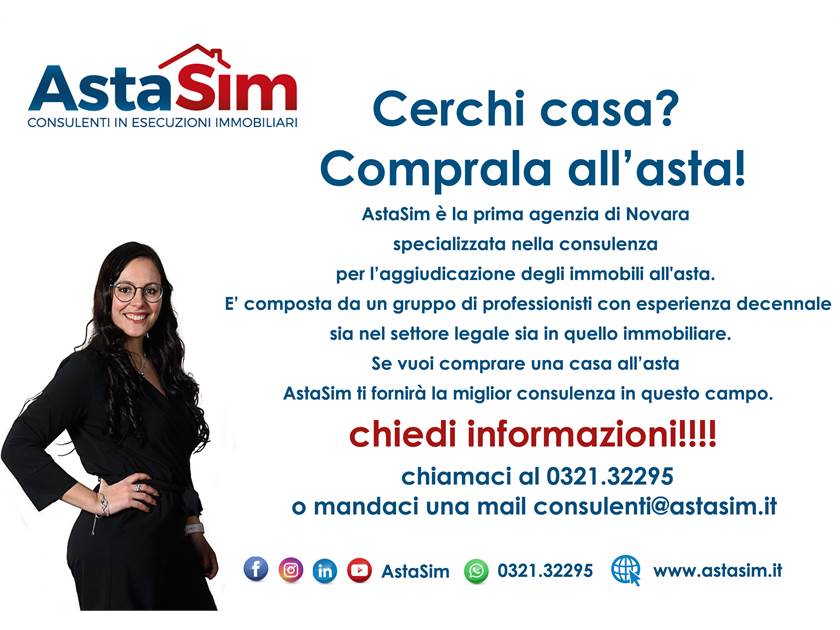 Contattaci allo 0321.32295 oppure visita il ns sito www.astasim.it per avere tutte le informazioni necessarie, i nostri consulenti sono a tua disposizione per accompagnarti dalla ricerca dell’immobile sino alla consegna delle chiavi, compresa l’assistenza per l’ottenimento del mutuo.