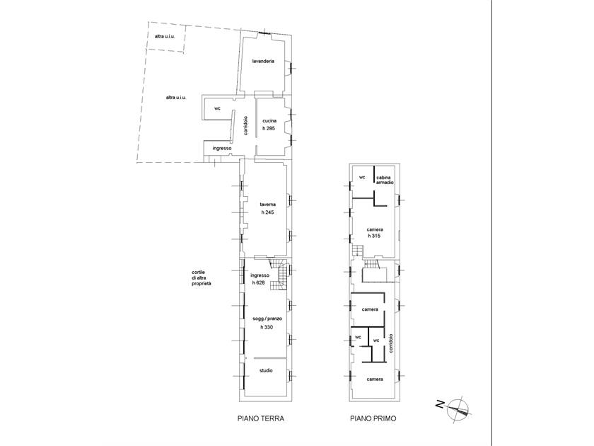 al piano terra: ingresso con salone e soggiorno, studio, cucina abitabile, camera, taverna e bagno.